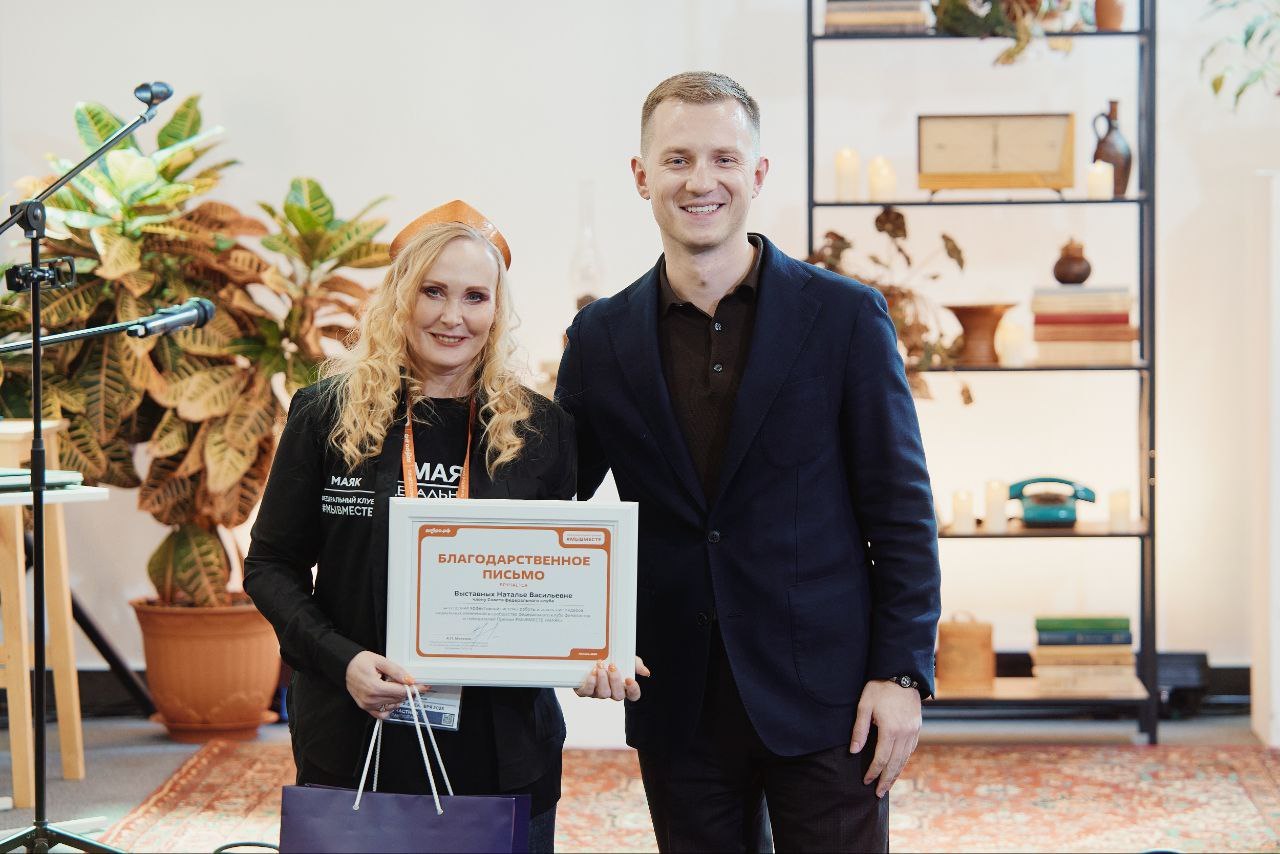 Наталья Выставных отмечена благодарственным письмом за создание эффективной системы работы и сплочение лидеров социальных изменений в сообществе федерального клуба финалистов и победителей Премии #МЫВМЕСТЕ "Маяк".