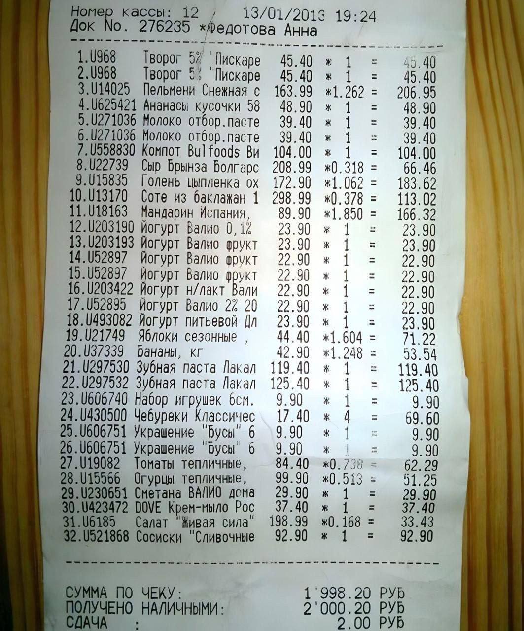 Чек из 2013 года, наполненный разными продуктами, от творога по 48 рублей до голени цыпленка по 173 может вызвать депрессию.