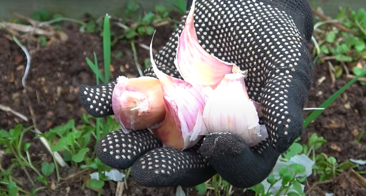 - Подготовка к посадке. Перед посадкой чеснок нужно разделить на зубчики и обработать дезинфицирующими растворами для повышения иммунитета. Важно обращать внимание на качество семян, отбирая только здоровые и крупные зубчики.