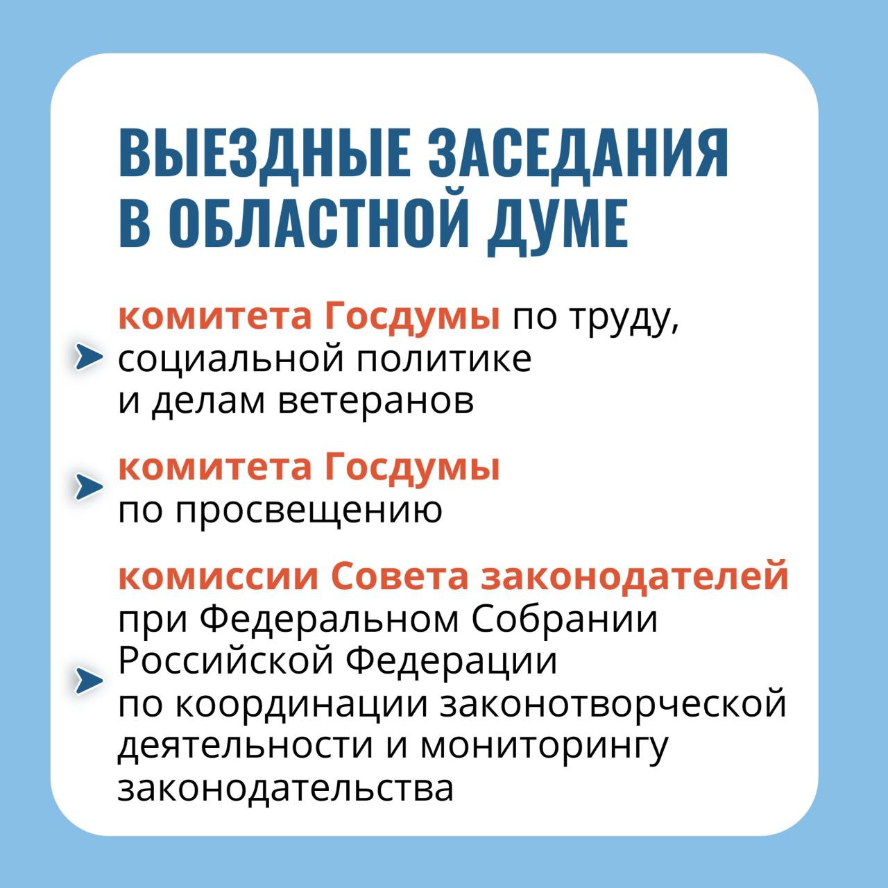 Рассказываем о ключевых направлениях работы регионального парламента в карточках.