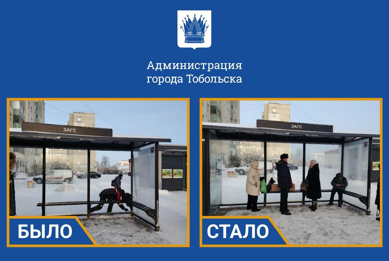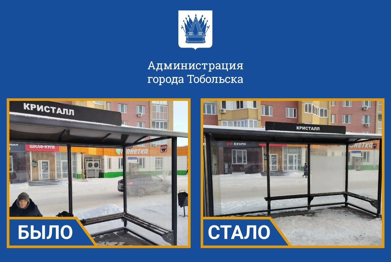 Сотрудники подрядной организации восстановили остекление на остановочных павильонах города.