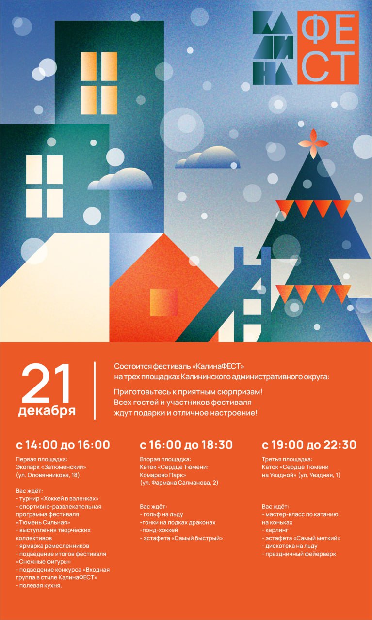 Фестиваль «КалинаФЕСТ» проводится в рамках проекта главы города Тюмени Максима Викторовича Афанасьева «Тюменская зима». Подробнее https://vk.com/tmnourhome?from=groups&w=wall-75524445_138113