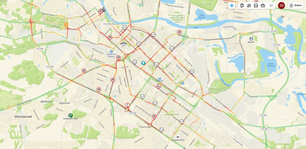Движение в городе оказалось практически парализовано. По данным сервисов: зафиксировано несколько ДТП, осложнено движение на ключевых магистралях.