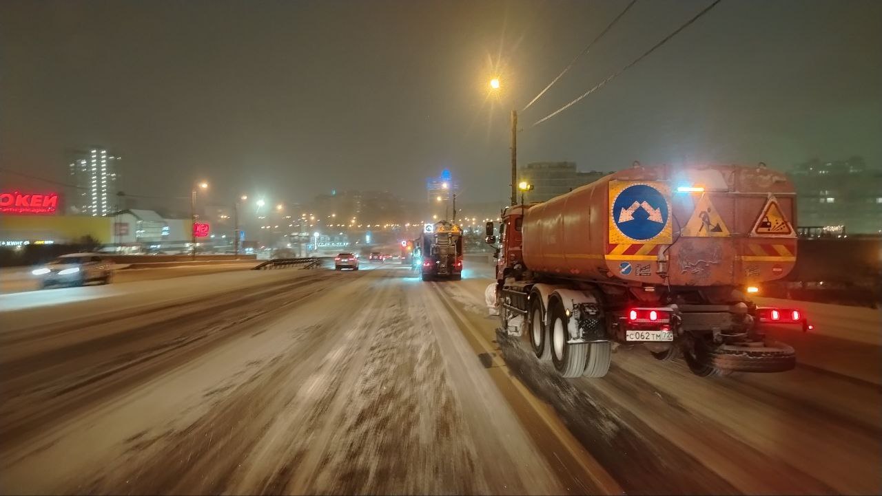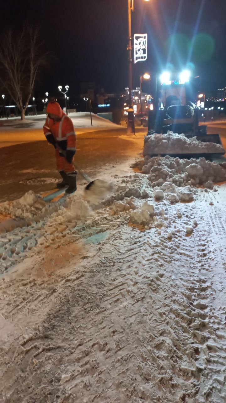В ночное время на улицах города работало 427 единиц различной дорожной техники, включая комбинированные дорожные машины, тракторы, погрузчики и самосвалы. Одновременно на улицах трудились более 200 дорожных рабочих. В дневное время численность рабочих увеличена до 479 человек, а количество техники — до 477 единиц.