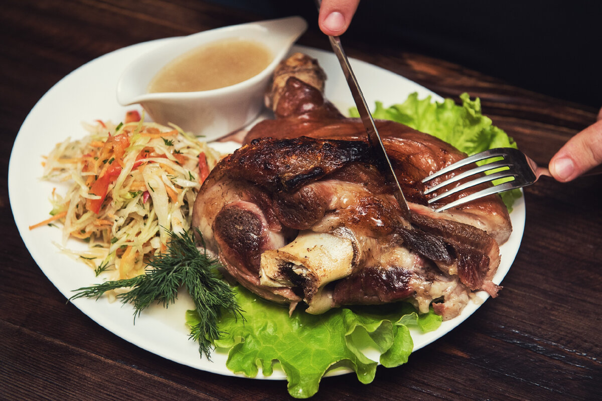 Запеченная баранья рулька - это не просто блюдо, а настоящее кулинарное искусство, способное вызвать восторг у всех, кто его попробует. Такое угощение станет идеальным выбором для праздничного стола или романтического ужина, благодаря своему удивительно мягкому мясу с хрустящей корочкой, которая образуется в процессе запекания.