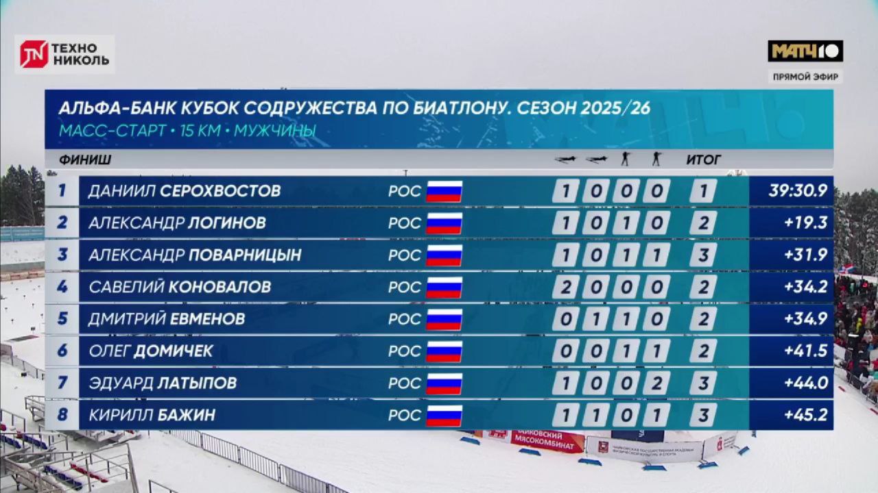 Тюменский спортсмен Александр Поварницын завоевал бронзовую медаль в масс-старте на Альфа-Банк Кубке Содружества по биатлону