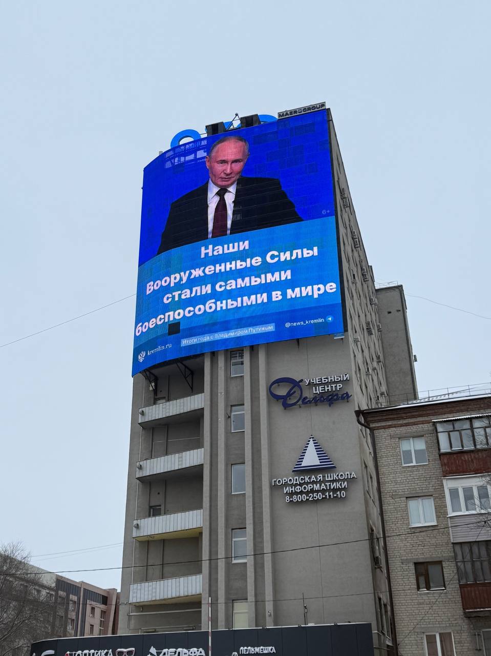На большом экране в Тюмени крутят тезисы Владимира Путина с «Итогов года»