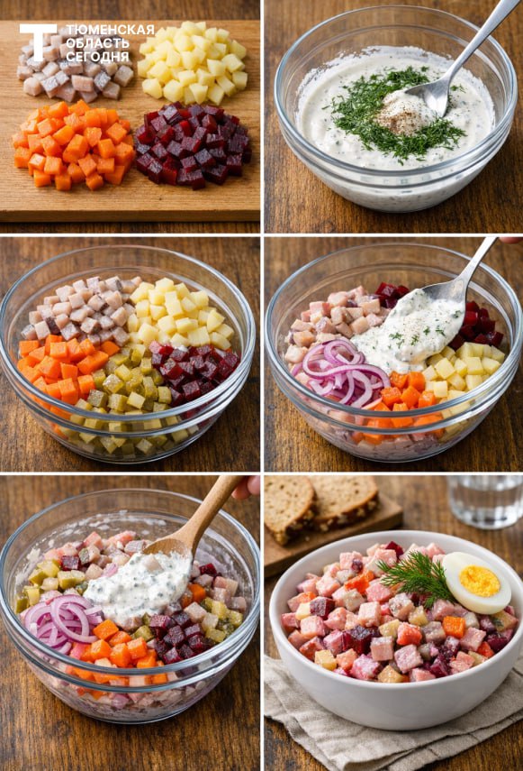 • Овощи и сельдь нарежьте аккуратными кубиками одинакового размера.