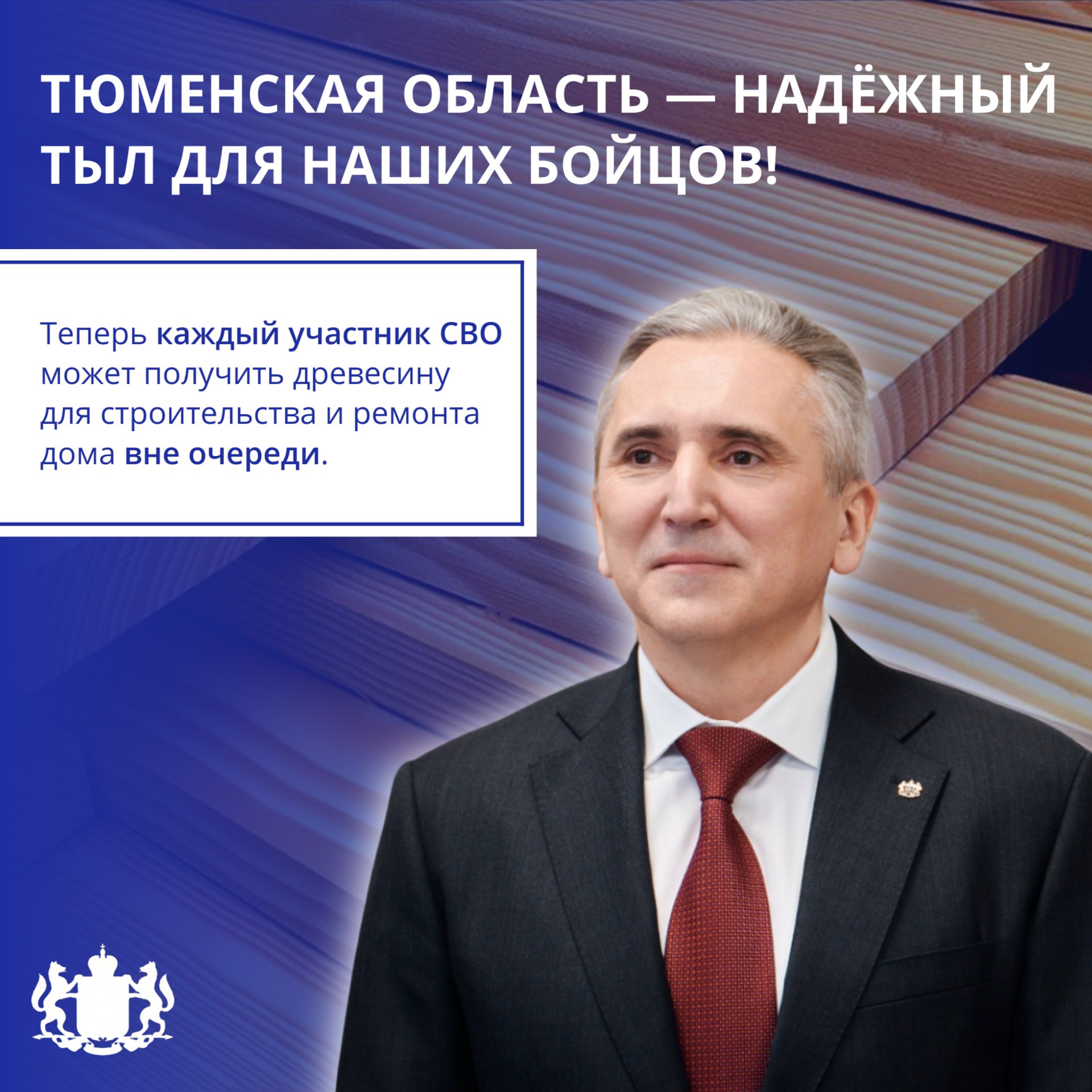 Право на первоочередное получение древесины для строительства жилья имели только земляки, удостоенные звания Героя России или награждённые орденами за участие в СВО.