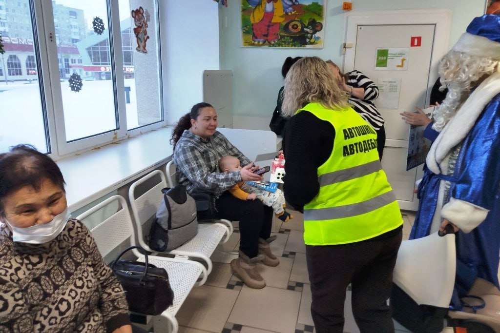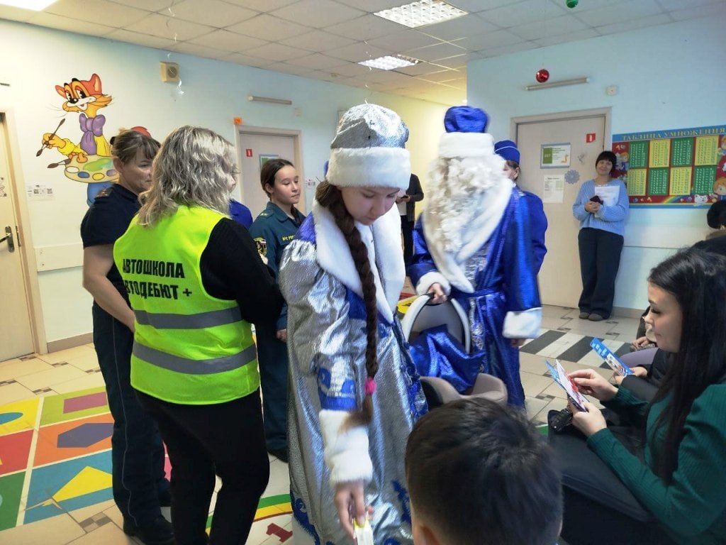 При участии отряда ЮИД школы №5, представителей автошколы, Общественной палаты города Тобольска Ольги Ширяевой и Фаяза Музафарова, и заместителя главного врача ОБ №3 Натальи Аккуратовой, проведена акция «Безопасный Новый год». И, конечно, главные героями мероприятия стали Дед Мороз и Снегурочка!