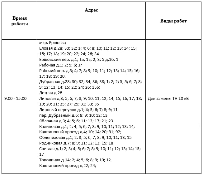 В городе будут производиться временные отключения электроэнергии. Эти работы необходимы для обеспечения надежного и качественного электроснабжения ваших домов и предприятий в будущем.
