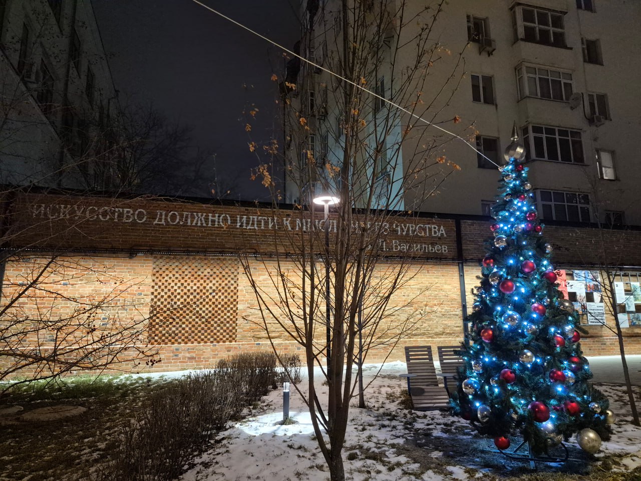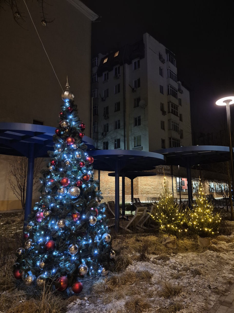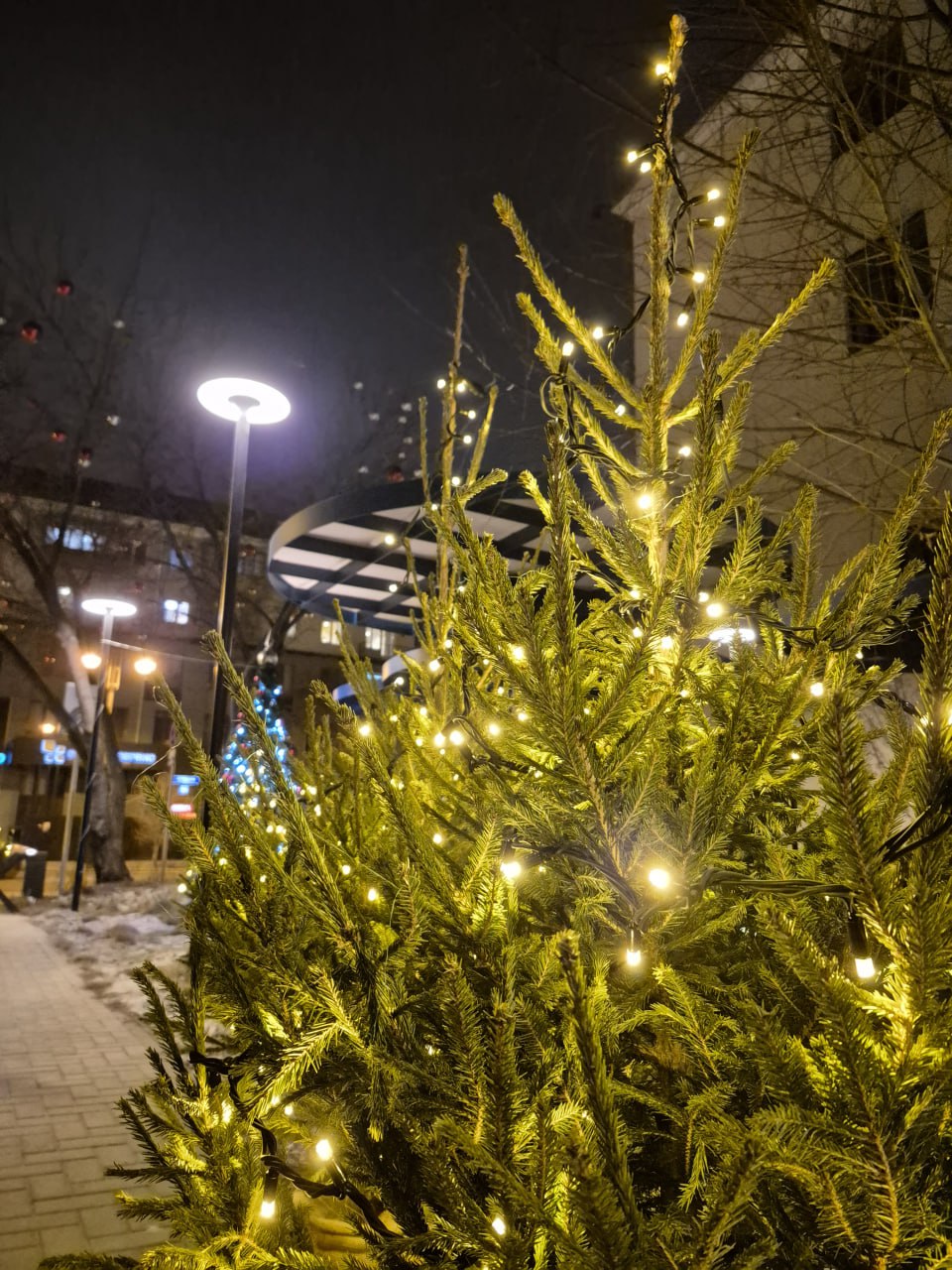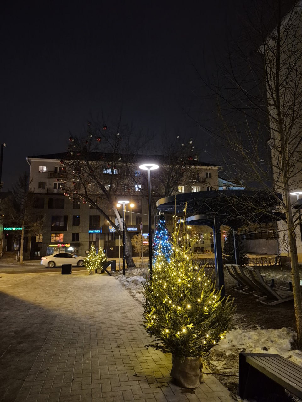 Если свернуть с улицы Челюскинцев на Республики, вы почти сразу увидите небольшой, но очень уютный сквер. Там 8 живых ёлочек сияют гирляндами, ожидая наступления Нового года!
