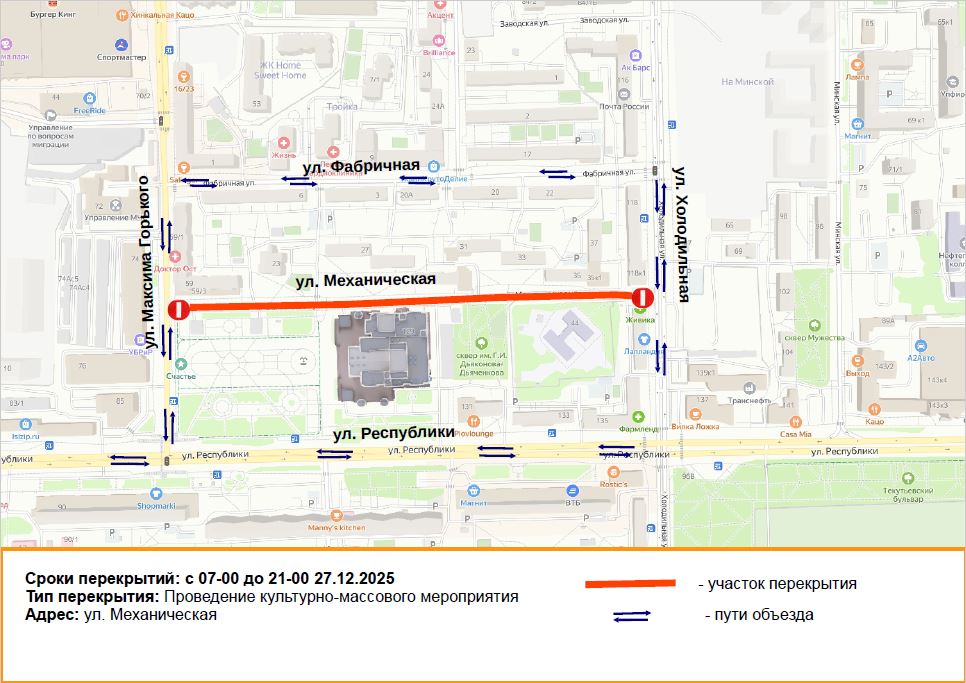 Возможные маршруты объезда: ул. Республики, ул. Максима Горького, ул. Фабричная, ул. Холодильная.