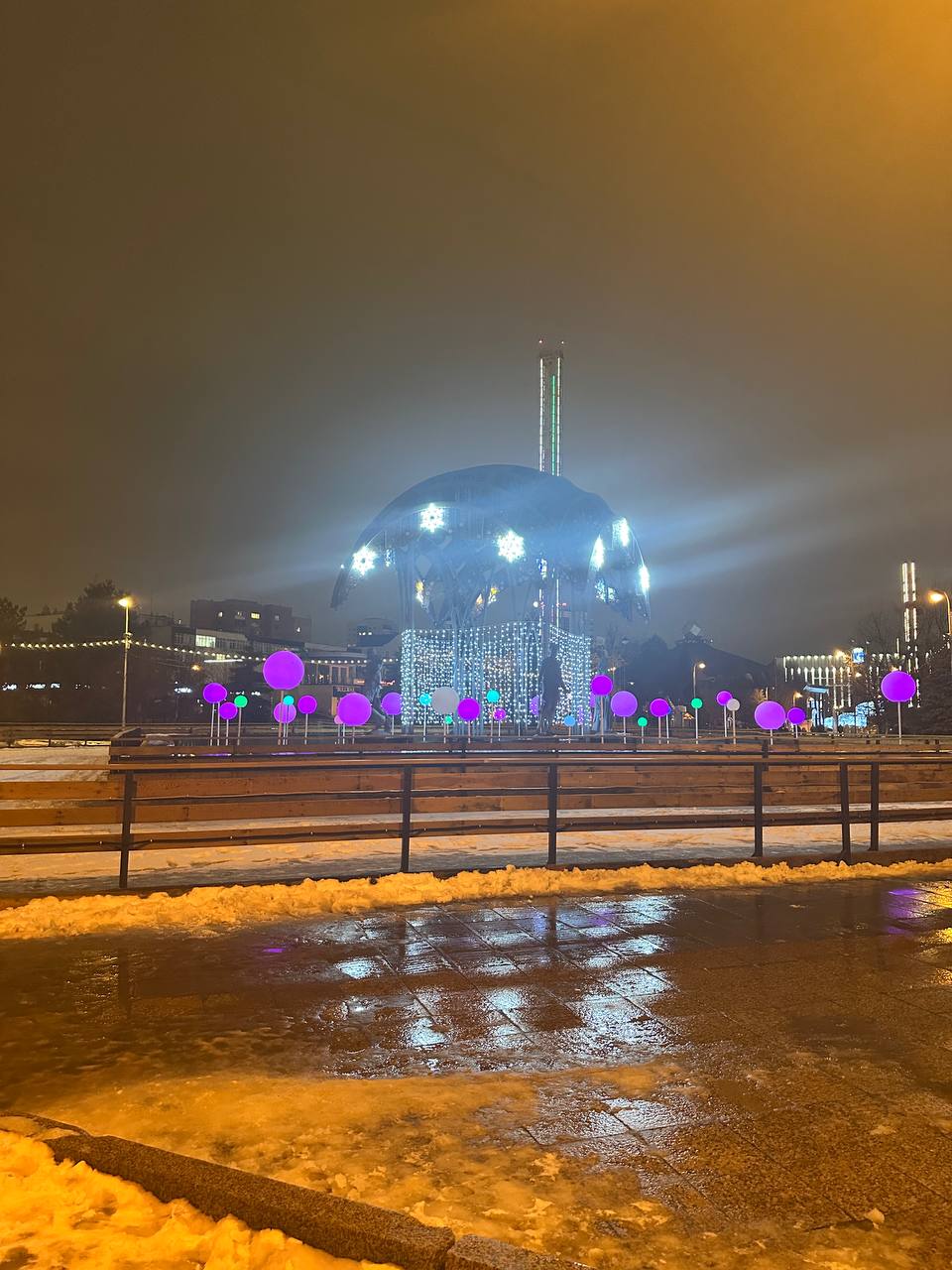 На Цветном бульваре это ощущение возвращается: у фонтана «Времена года» установлены светодинамические снежинки, а сейчас к ним присоединились настоящие — тихо кружатся в воздухе.