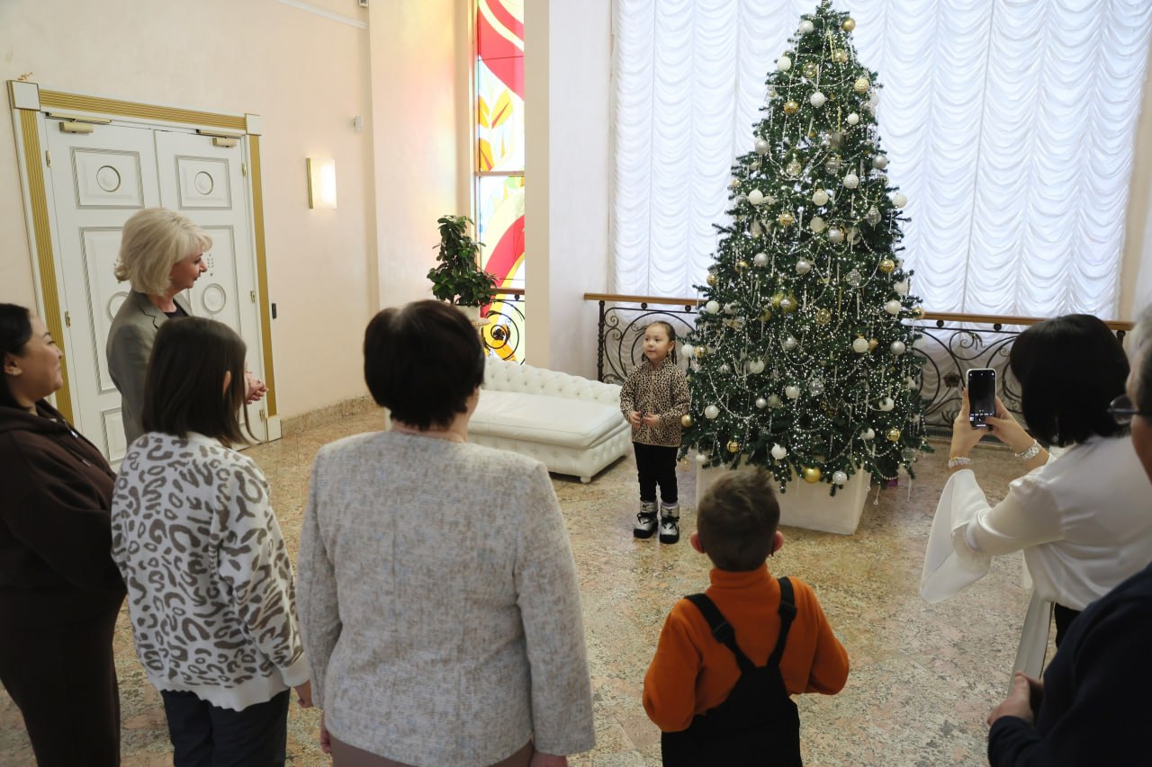 Во Дворец бракосочетания забегали Дед Мороз со Снегурочкой и оставили под ёлкой подарки: для 7-летнего Романа – самокат, а для сестер Эвелины (5 лет) и Жанэтты (11 лет) — куклы.