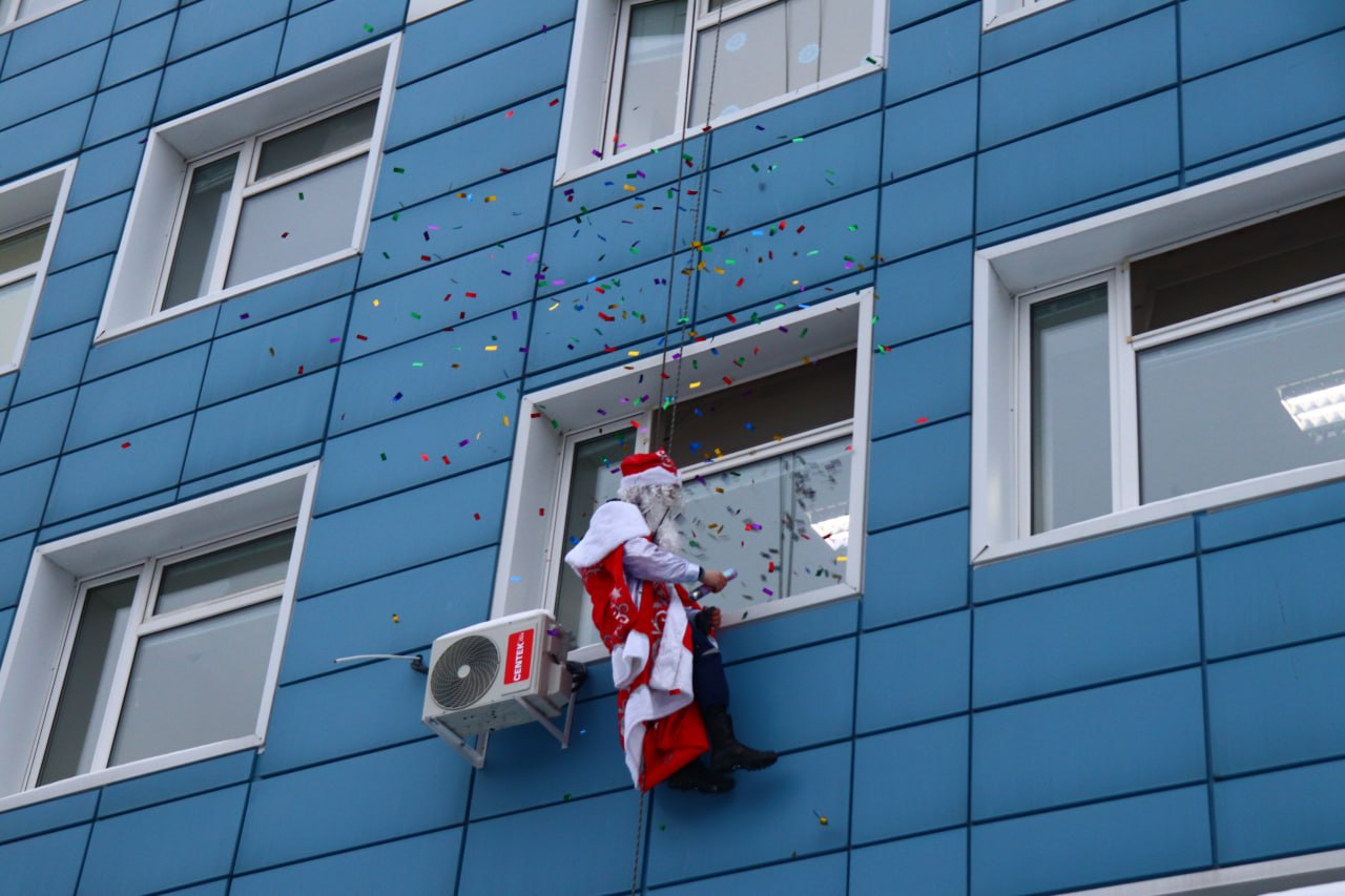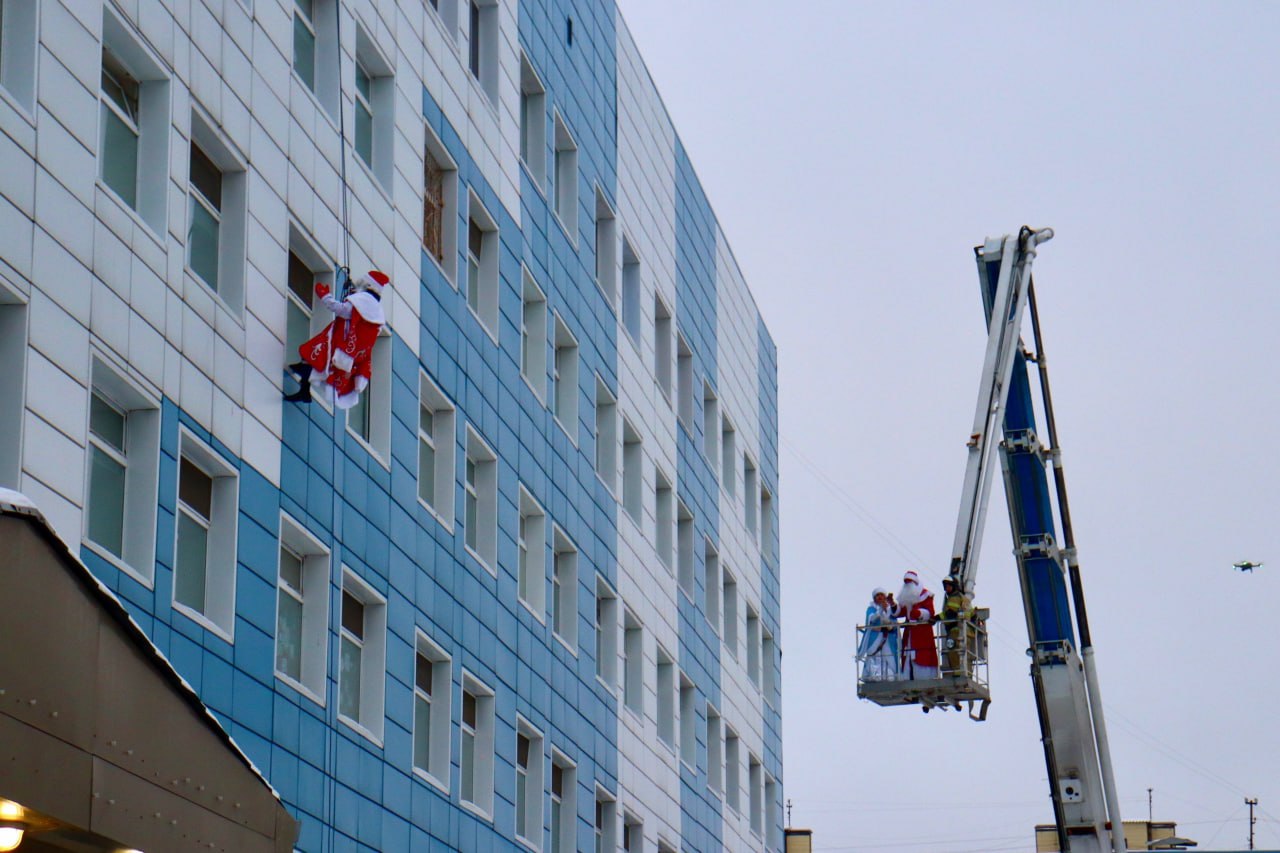 Волонтеры в при помощи альпинистского снаряжения спустятся с крыши больницы и заглянут в каждое окно. Детям вручат подарки и поздравят с наступающим Новым годом.
