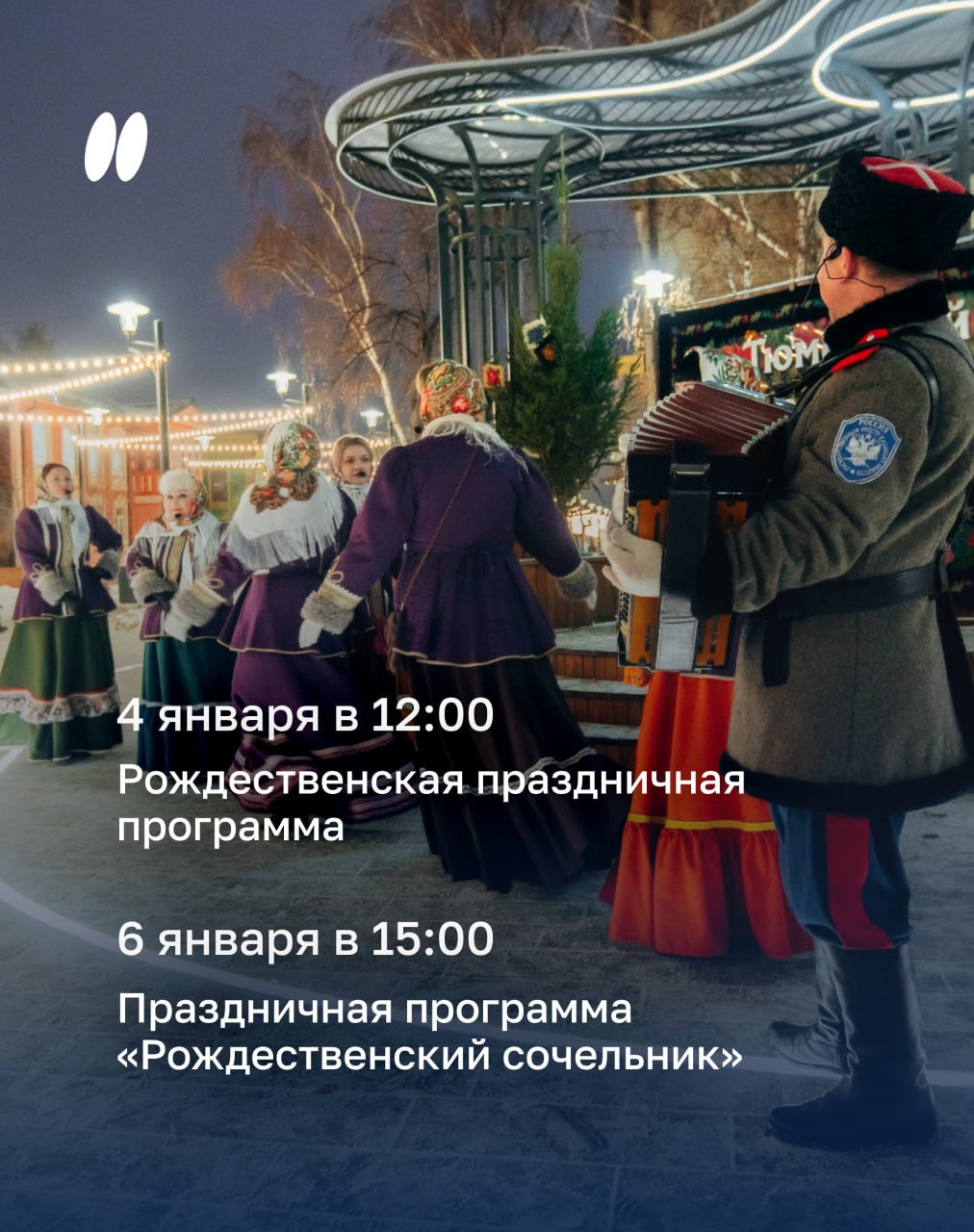 • в 16:00 — праздничная программа и хоровод у ёлки;