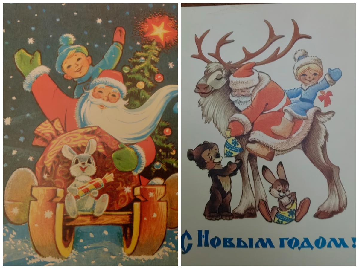 На первый взгляд, две новогодние открытки могут показаться сделанными одной рукой, но если присмотреться внимательнее, становится ясно, что одна из них принадлежит не известному Владимиру Зарубину, а талантливо скрытому художнику Владимиру Четверикову. В мире иллюстрации оба мастера известны добрыми, веселыми зверятами, которые приносят в дом праздник и радость.