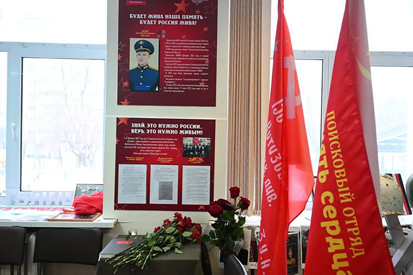 В мероприятии приняли участие родители военнослужащего, учителя, поисковики и ветераны. В основе экспозиции — фотографии, документы и личные вещи бойца.