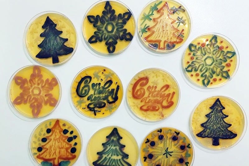 Зауральские микробиологи создали новогоднюю открытку из бактерий
