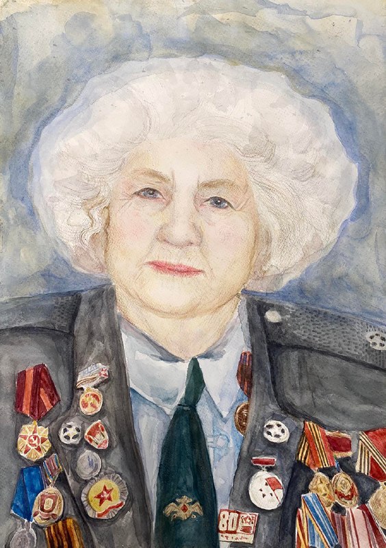 лауреат III степени в номинации "Живопись" (13–15 лет) - Алина Насонова из Тюменской детской художественной школы им. А.П. Митинского с портретом ветерана Великой Отечественной войны Веры Мариной;