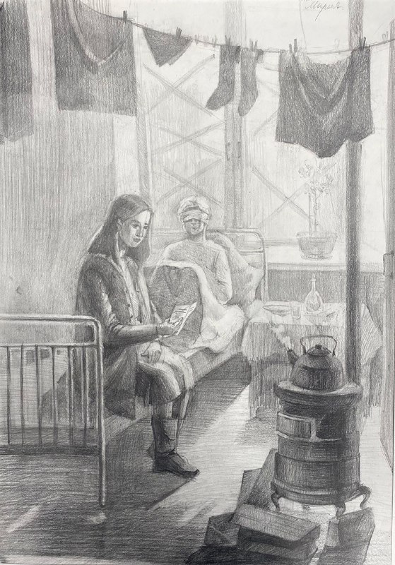 лауреат II степени в номинации "Графика" (16–18 лет) - Мария Шилина-Нисковских из Тюменской детской художественной школы им. А.П. Митинского с работой "Письмо из дома";