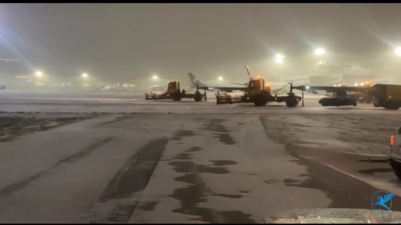 Минувшей ночью рейсы массово откладывали из-за снегопада. Там приходилось чистить полосы, а противообледенительная обработка тормозила вылеты.