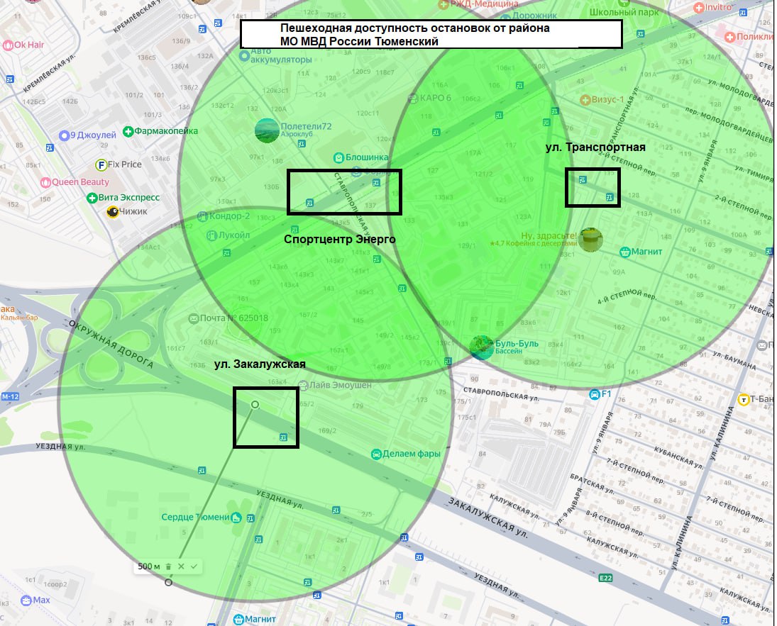 Существующие улично-дорожные условия для организации работы автобусов большого класса по маршруту № 76 – стесненные, поэтому его схема движения будет незначительно изменена с учетом сохранения пешеходной доступности для жителей района МО МВД России «Тюменский» (500 метров).