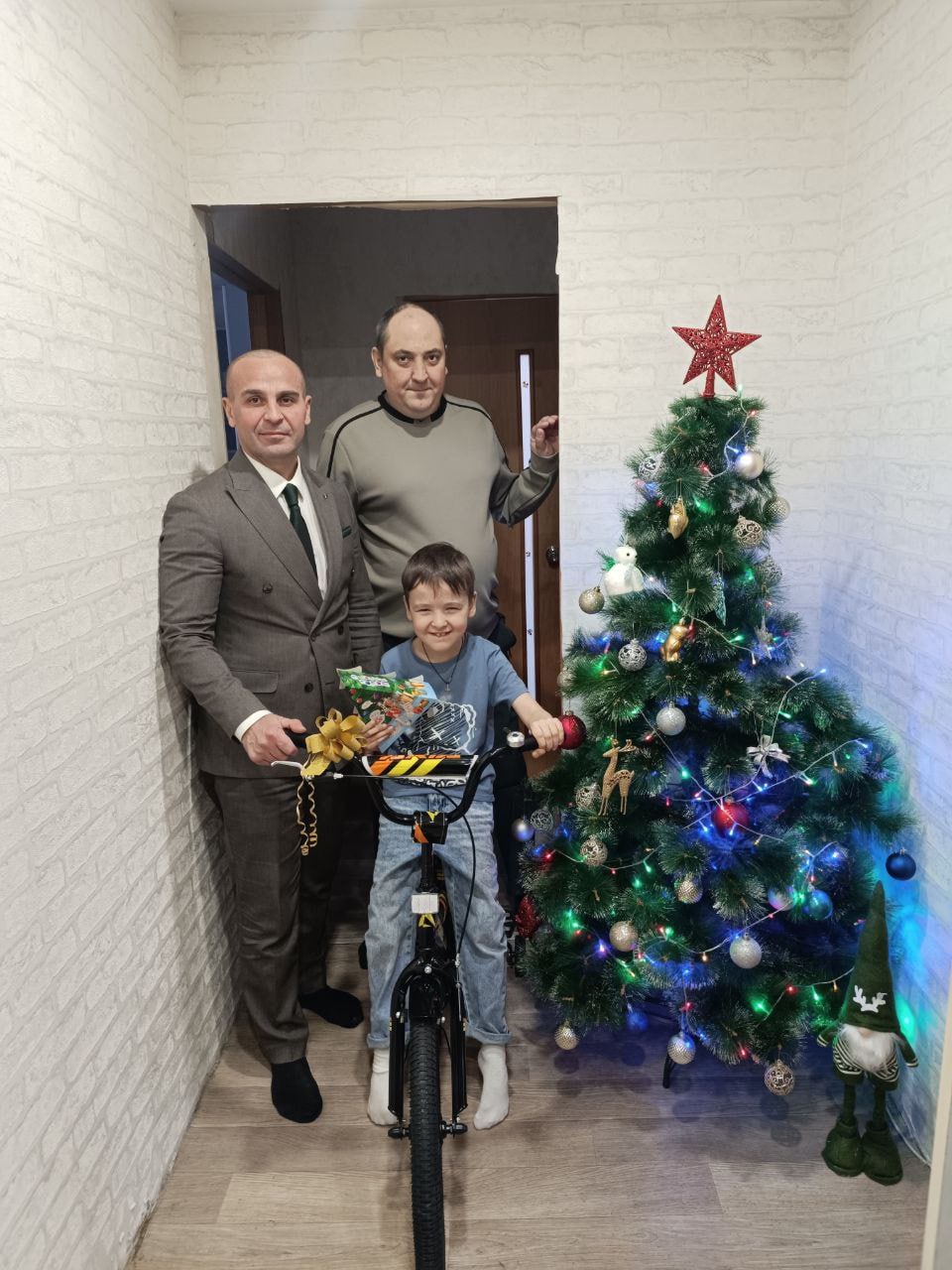 В преддверии Нового года руководитель управы Калининского административного округа Олег Савчук принял участие в ежегодной благотворительной акции «Ёлка желаний». В этом году он стал добрым волшебником для 7-летнего мальчика Марка, подарив ему новый велосипед и сладкий подарок от Деда Мороза.