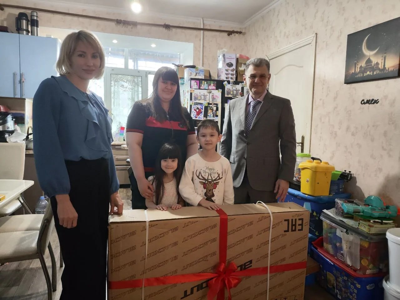 Алексей Семенович Иванов подарил 7-летнему Риналю велосипед и сладкий подарок.