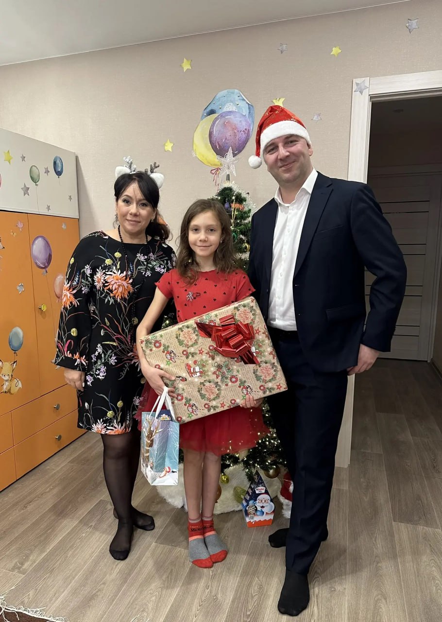 Александр Сергеевич Тропин поздравил с наступающим Новым годом 8-летнюю Дарью и передал ей от Дедушки конструктор «Гарри Поттер. Символы Хогвартса» и сладкий подарок. Не остался без конфет и ее младший братик.