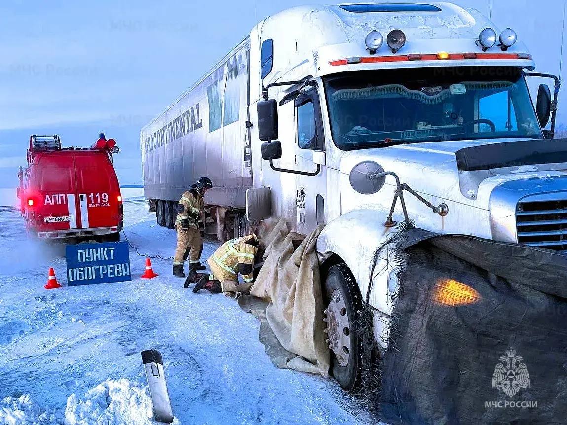 Водителям большегрузов в мороз помогли спасатели на трассе Тюмень — Омск