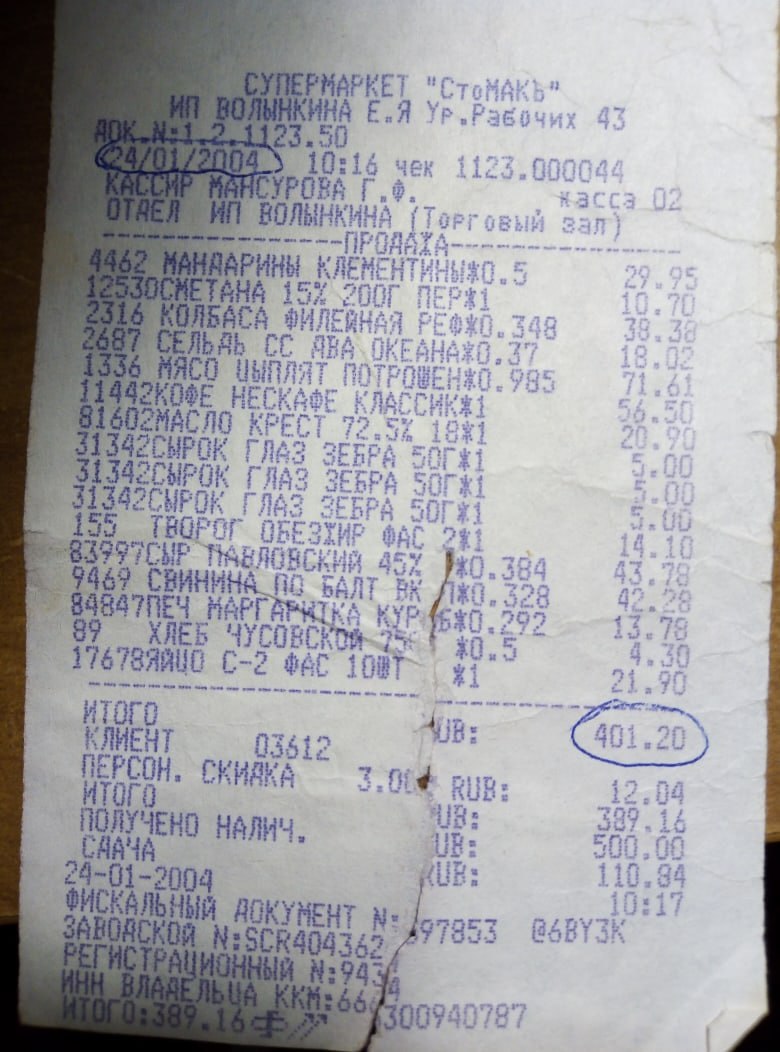 Сейчас чек на 400 рублей - это буквально 2-3 позиции, а когда-то это была целая продуктовая корзина!