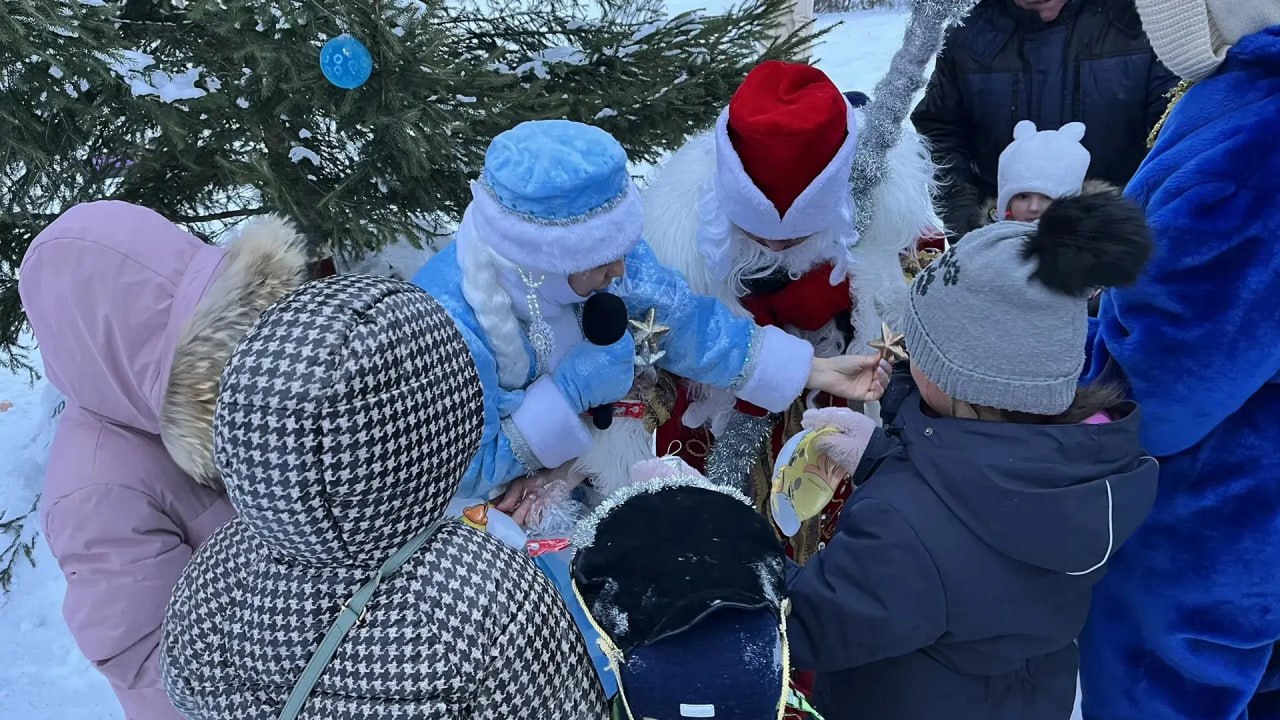 А к традиционному хороводу вокруг ёлки как раз подоспели Дед Мороз с красавицейвнучкой Снегурочкой: они поздравили жителей и гостей района и подарили самым активным участникам программы подарки.