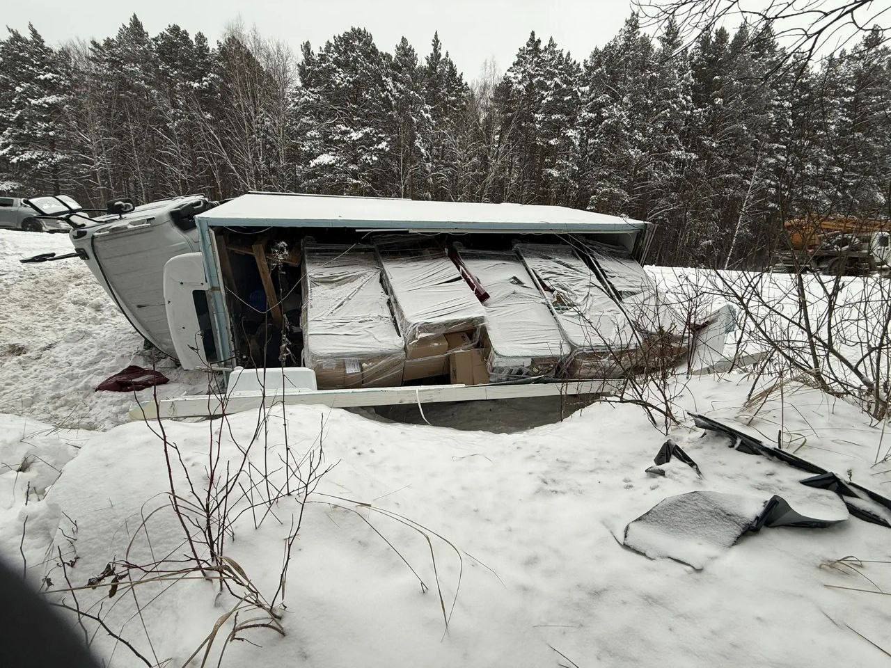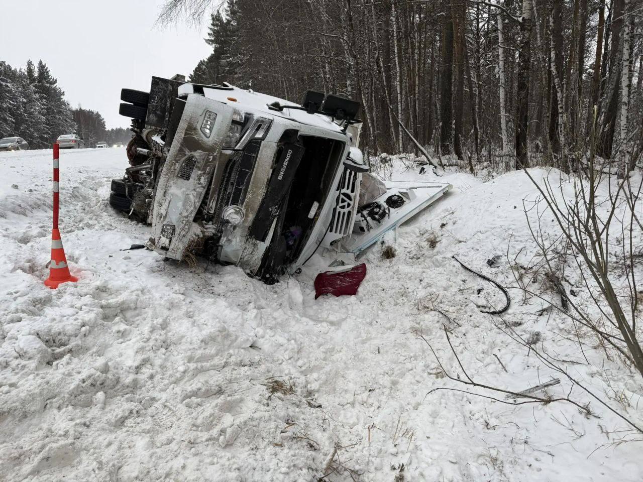 Легковушку разворотило, а фура лежит на боку на трассе Тюмень — Курган