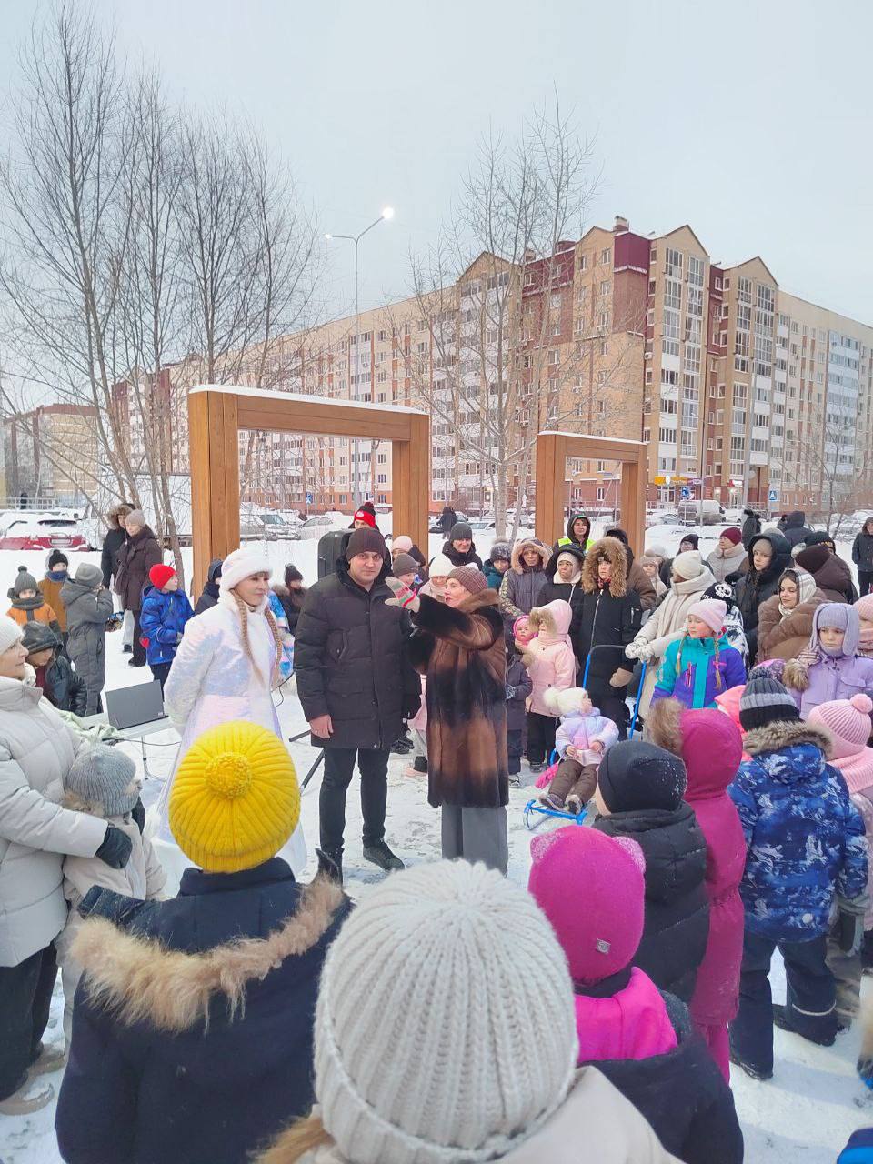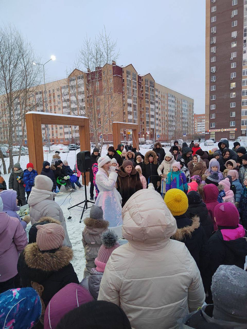 Руководитель управы Ленинского административного округа Илья Махарашвили и председатель органа территориального общественного самоуправления «Тура» Альбина Селезнева поздравили жителей района «Тура» с наступающим Новым годом. Праздник прошел в новом скверике, благоустроенном по ул. Мебельщиков.