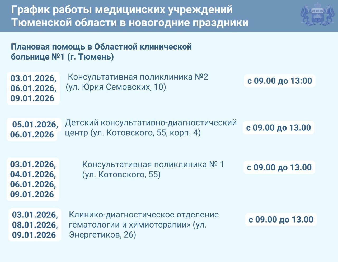 В карточках — режим работы с 31 декабря по 11 января.