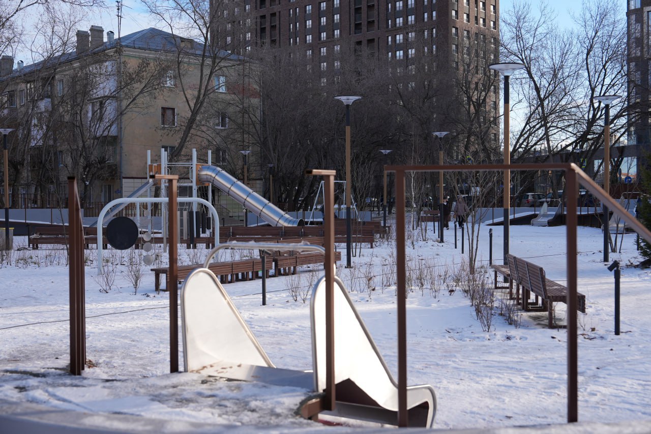 реконструкция сквера Льва Корнеева компанией "Брусника";