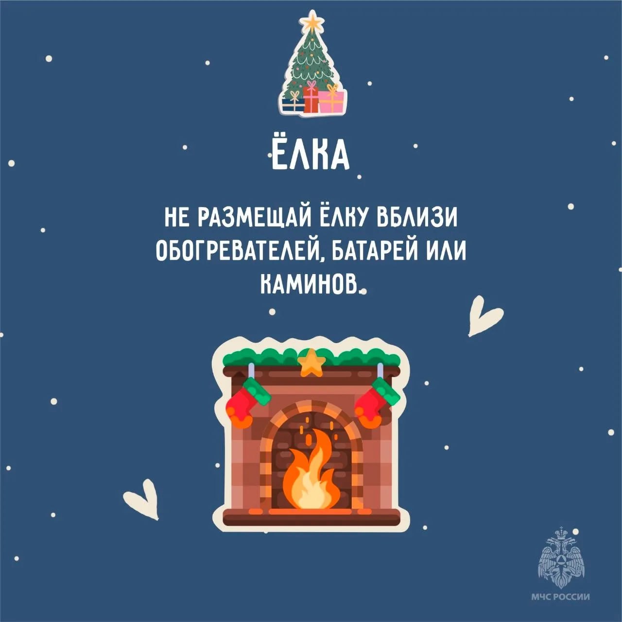 Проверь, чтобы ёлка была надежно установлена и находилась вдали от источников тепла.