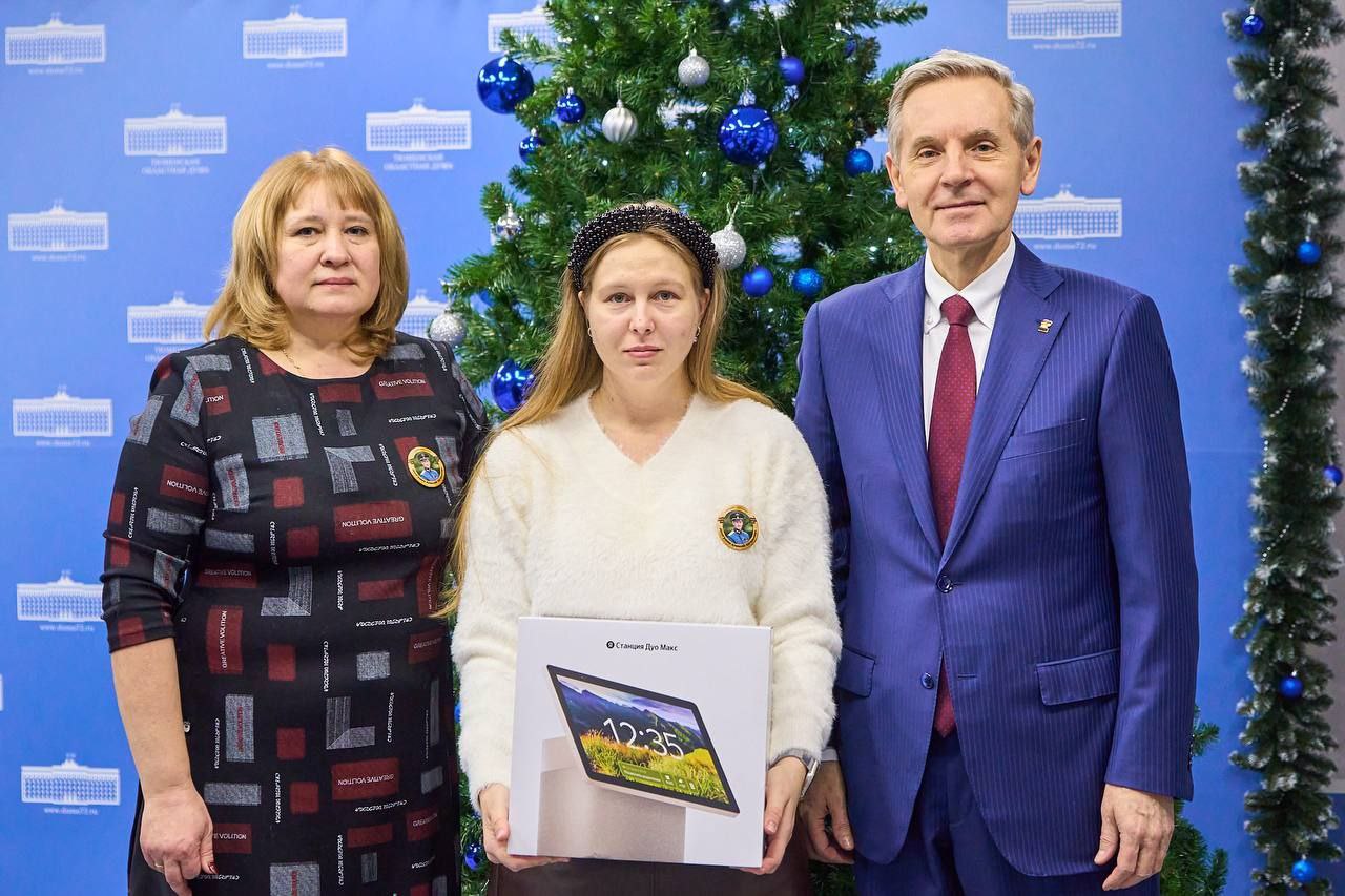 Первый заместитель председателя облдумы, руководитель фракции «Единая Россия» Андрей Артюхов поздравил с Новым годом семью погибшего участника СВО и подарил его сыну умную колонку.