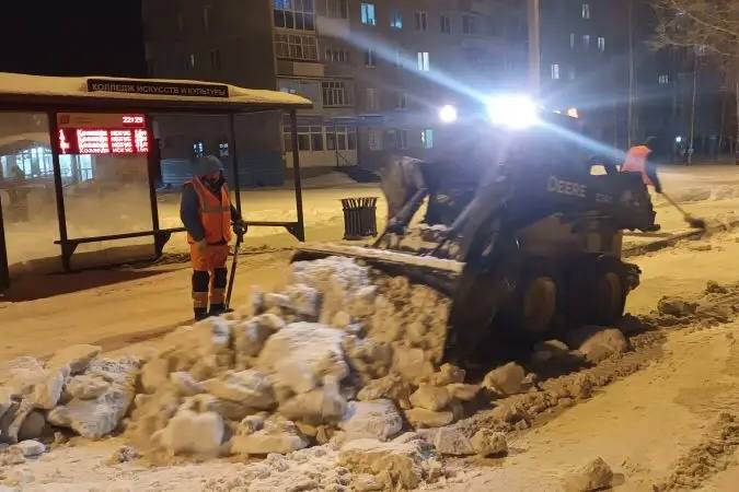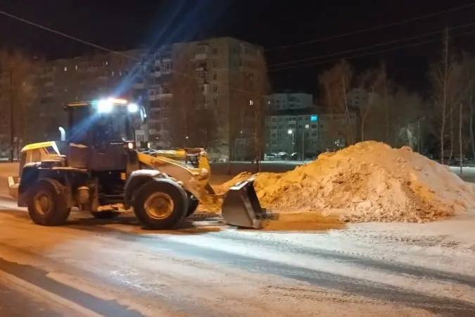 Сплошную вывозку снега завершаем в ночь;