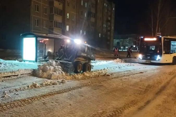 Планомерно вывозится снег с остановочных карманов.