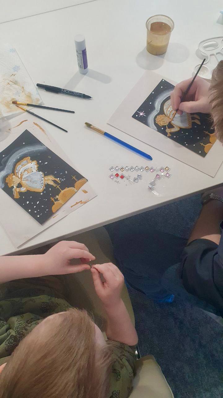 В этом арт-пространстве 4 января прошел первый новогодний мастер-класс, где взрослые и дети взяли в руки краски и создали уникальную рождественскую открытку.