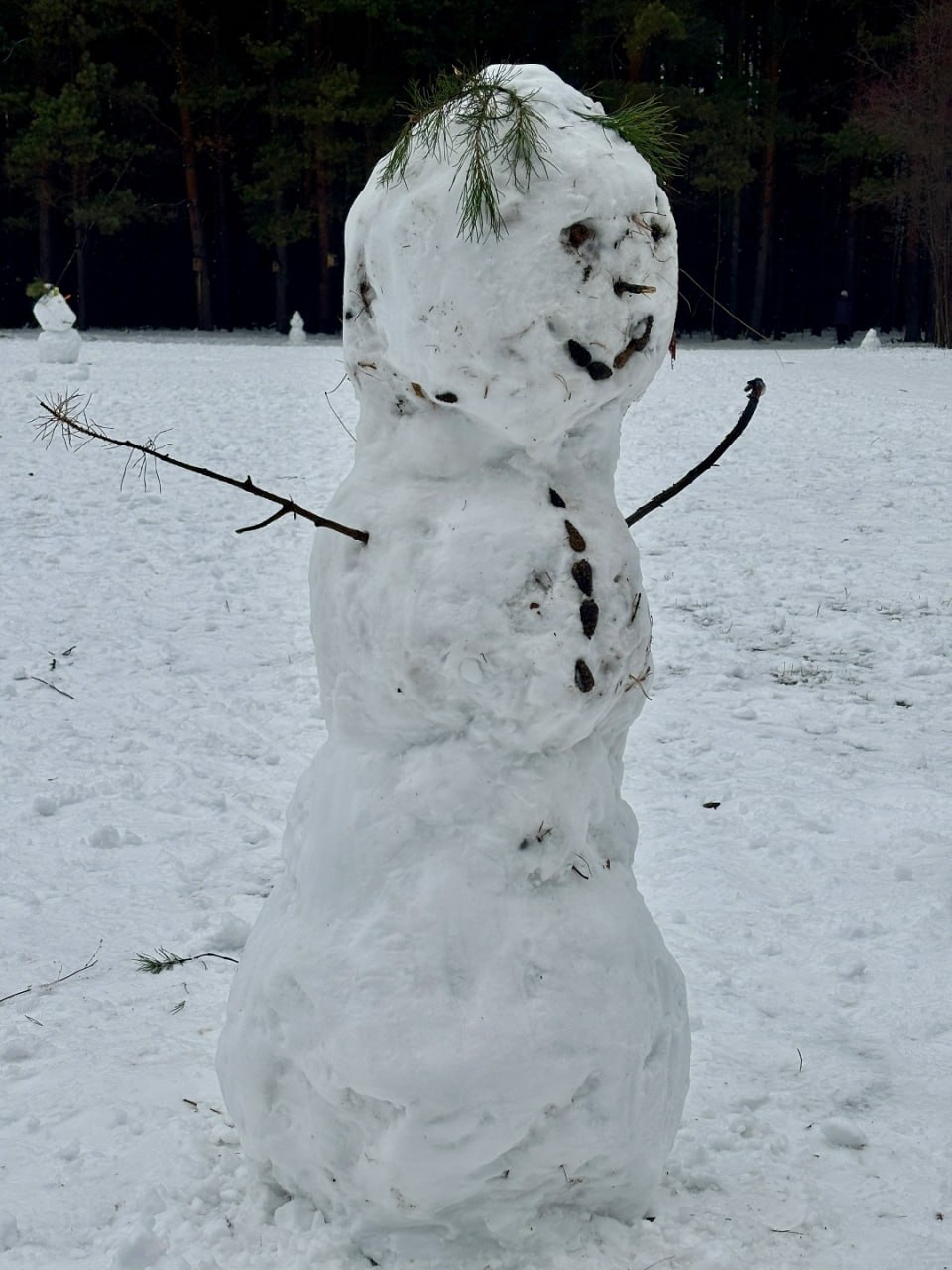 Третий тип – снеговик классический, в два или три шара, с морковкой вместо носа