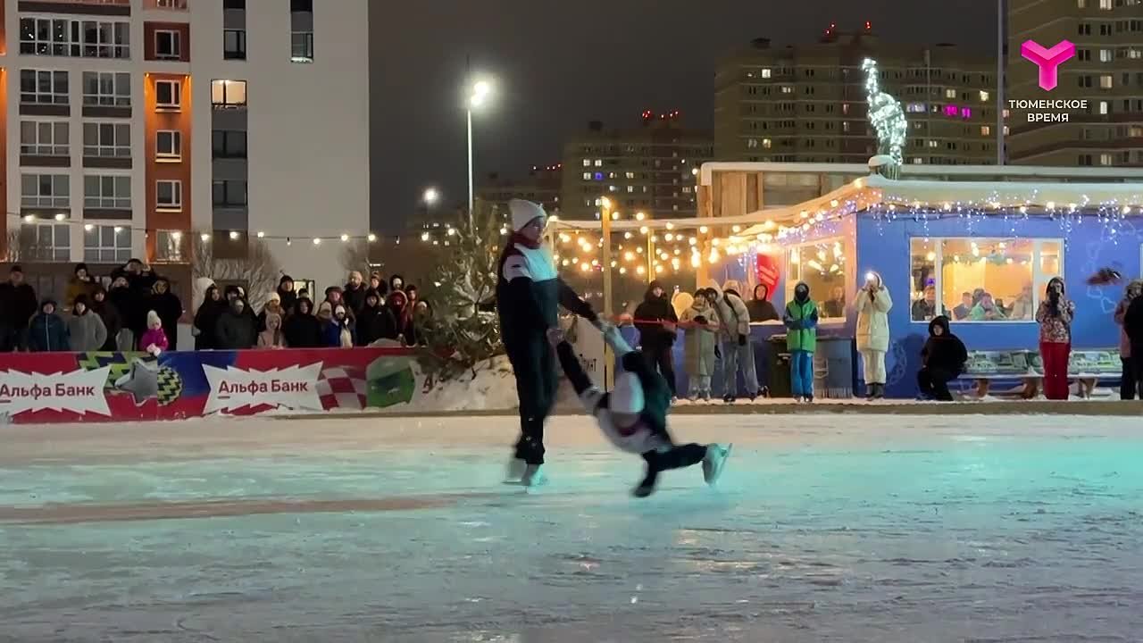 "Зимний вальс" исполняют тюменские фигуристы на льду катка "Сердце Тюмени"