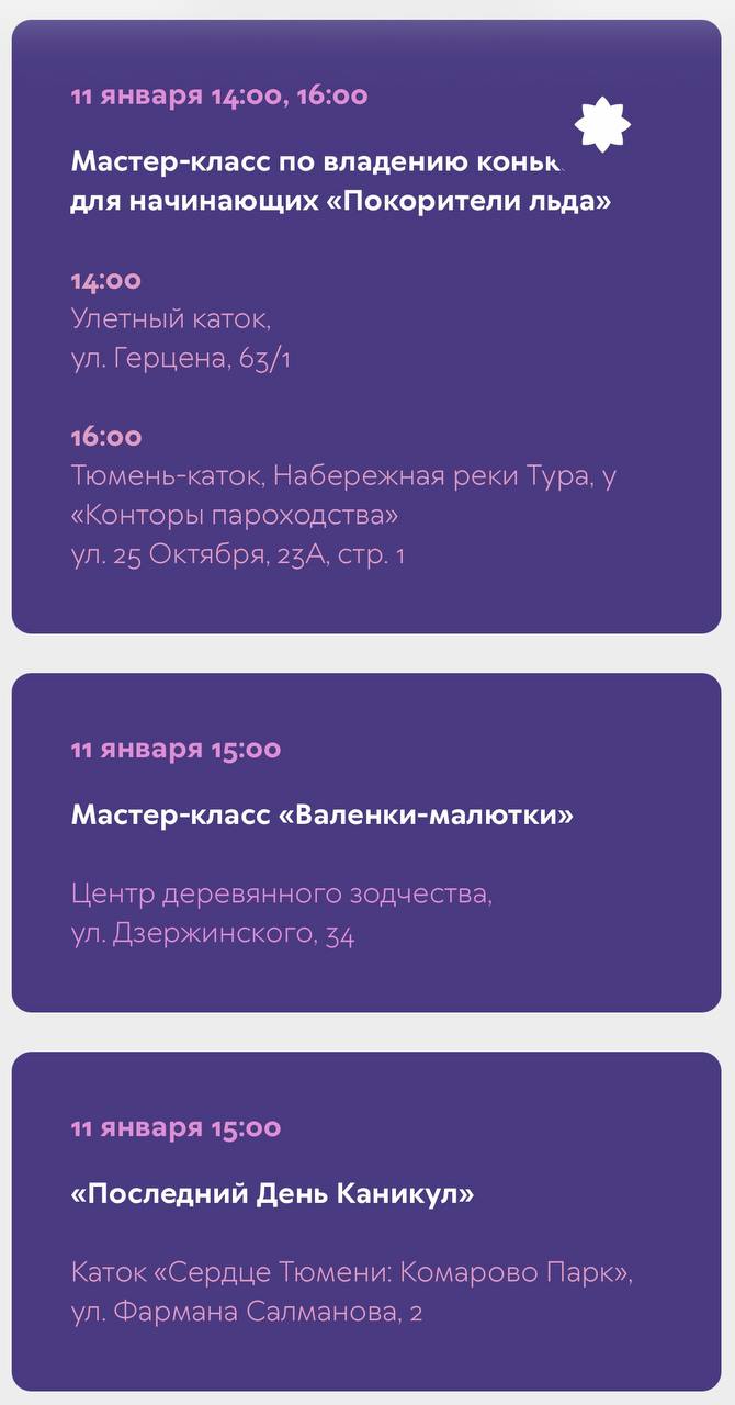 Также узнать о событиях в Тюмени, которые пройдут 11 января, можно на сайте: https://тюменская-зима.рф