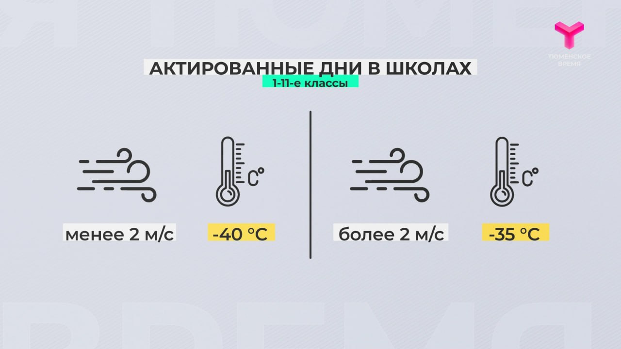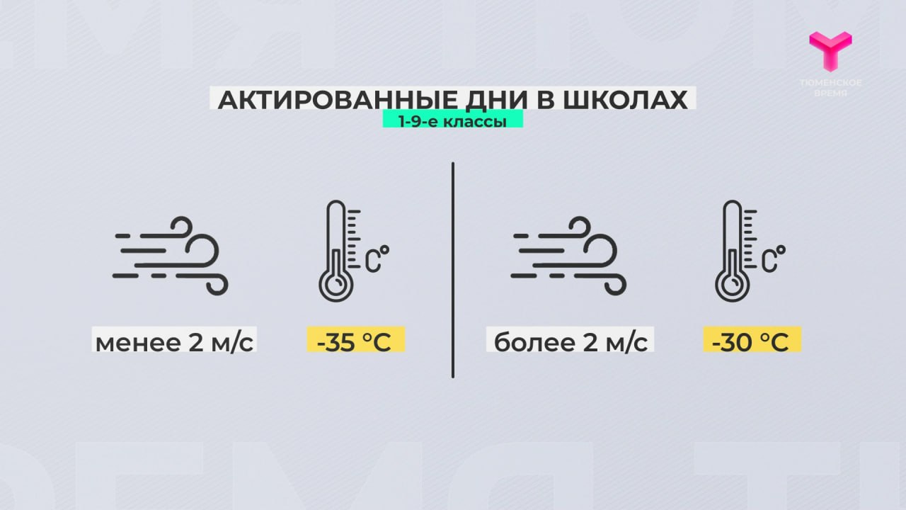 Для младших классов актировка наступает при температуре минус 30 и скорости ветра менее 2 метров в секунду. Либо при минус 25 с ветром более 2 метров в секунду