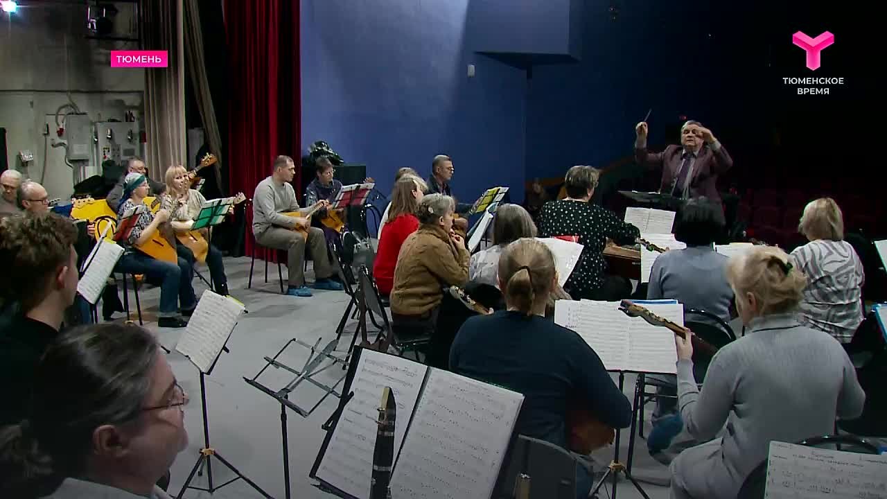 Тюменский оркестр русских народных инструментов имени Леонида Беззубова готовится к большому выходу на сцену.