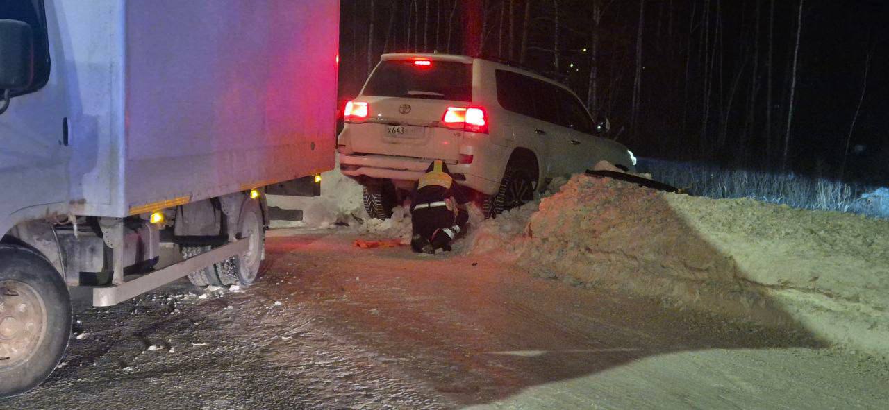 В мороз автоинспекторы вытащили «Ленд Крузер» из кювета