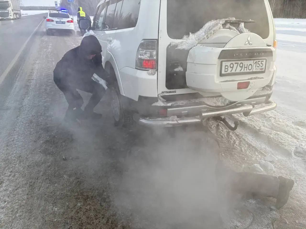 В 32-градусный мороз автоинспекторы оказали помощь водителю на 339-м километре федеральной автодороги Тюмень — Омск